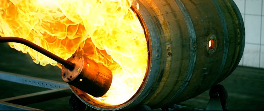 正在进行烤制的橡木桶。