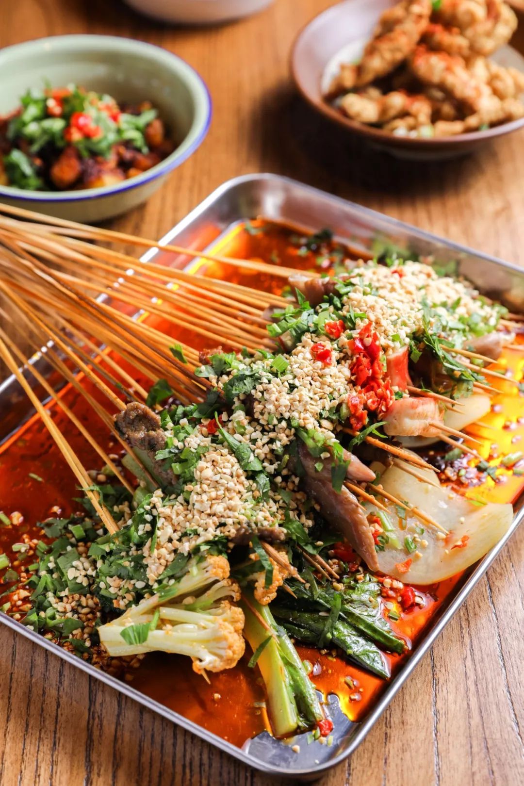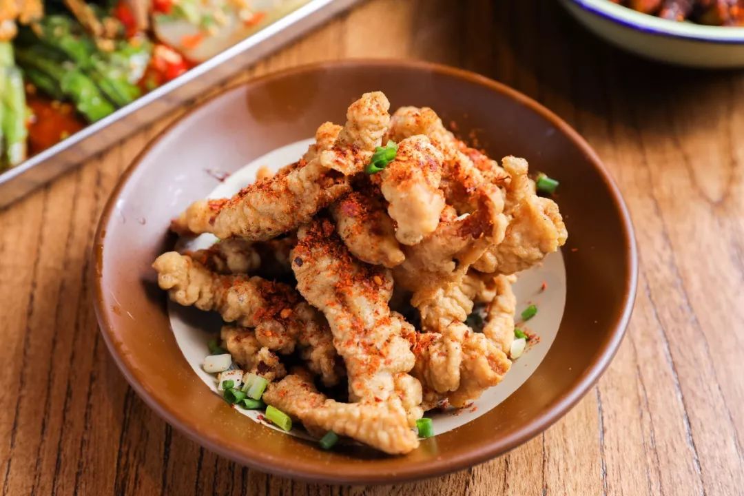 串串搭配上小盘菜。炸酥肉一定不可少!外酥里嫩的小酥肉,趁热吃才带劲!撒上辣椒面会更美味哦~