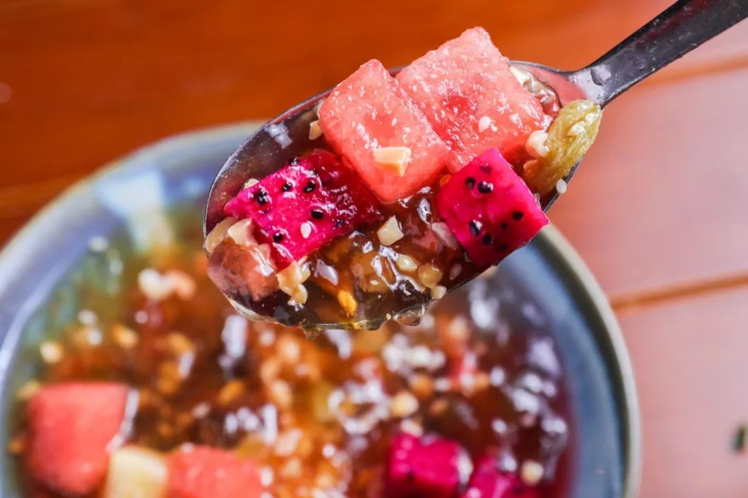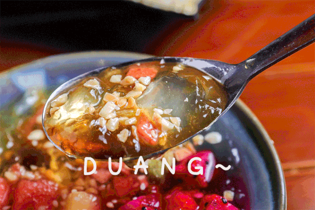 吃完火辣辣的川菜,当然要来一碗冰粉才过瘾!市面上少见的正宗手搓冰粉,口感细滑爽口!自带DUANG~DUANG~音效。里面还有时令水果,也太划算了叭~