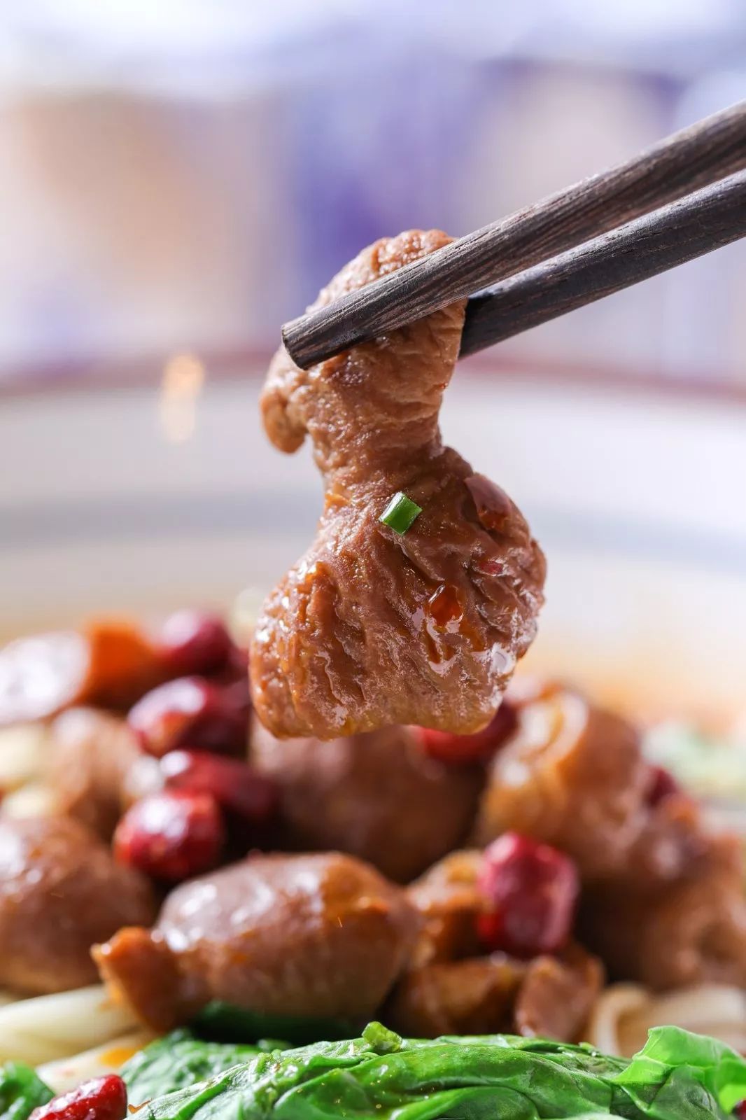 长出屏幕的鸭肠,处理的非常干净,不仅分量足足的,品质同样杠杠的~放入红汤中不过数秒就能吸收住鲜香的汤汁,嗦上一口,口感嫩滑,简直感动到想哭。