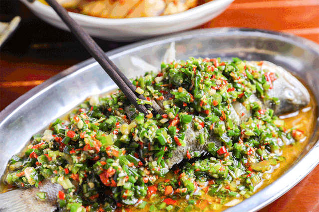 不是嗜辣星人也没关系!选用自然野生鲈鱼给你妥妥安排上,现杀现做,只为保持zui新鲜的口感!上面铺上满满的剁椒,色香味俱全!