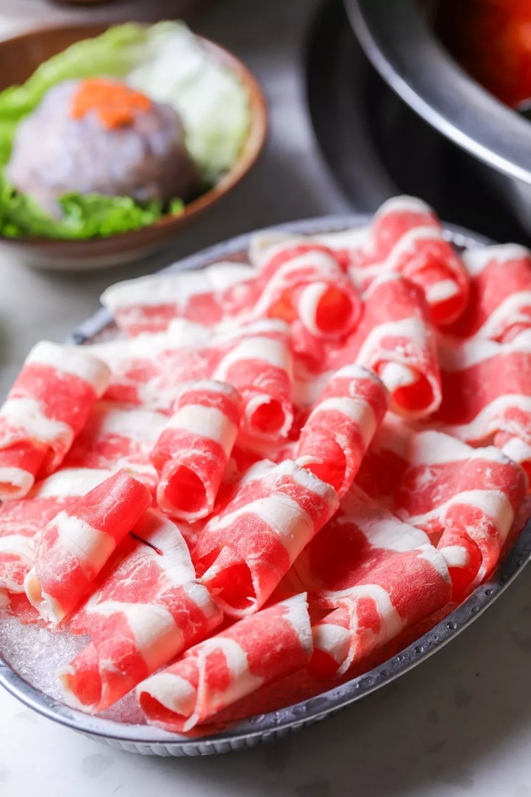 精选 高品质肥牛肉 ,纹路清晰,肥瘦相间刚刚好,久煮不老,入口即化,还会爆肉汁,一盘接着一盘! 满嘴都是牛肉的香气!