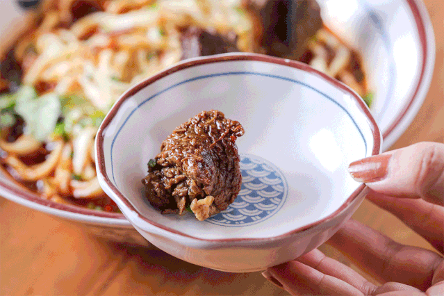牛肉都是提前卤过的,很入味也很酥烂,带着一点点的筋,更有嚼劲。一碗面里面竟然小半碗都是牛肉,真材实料看得到!