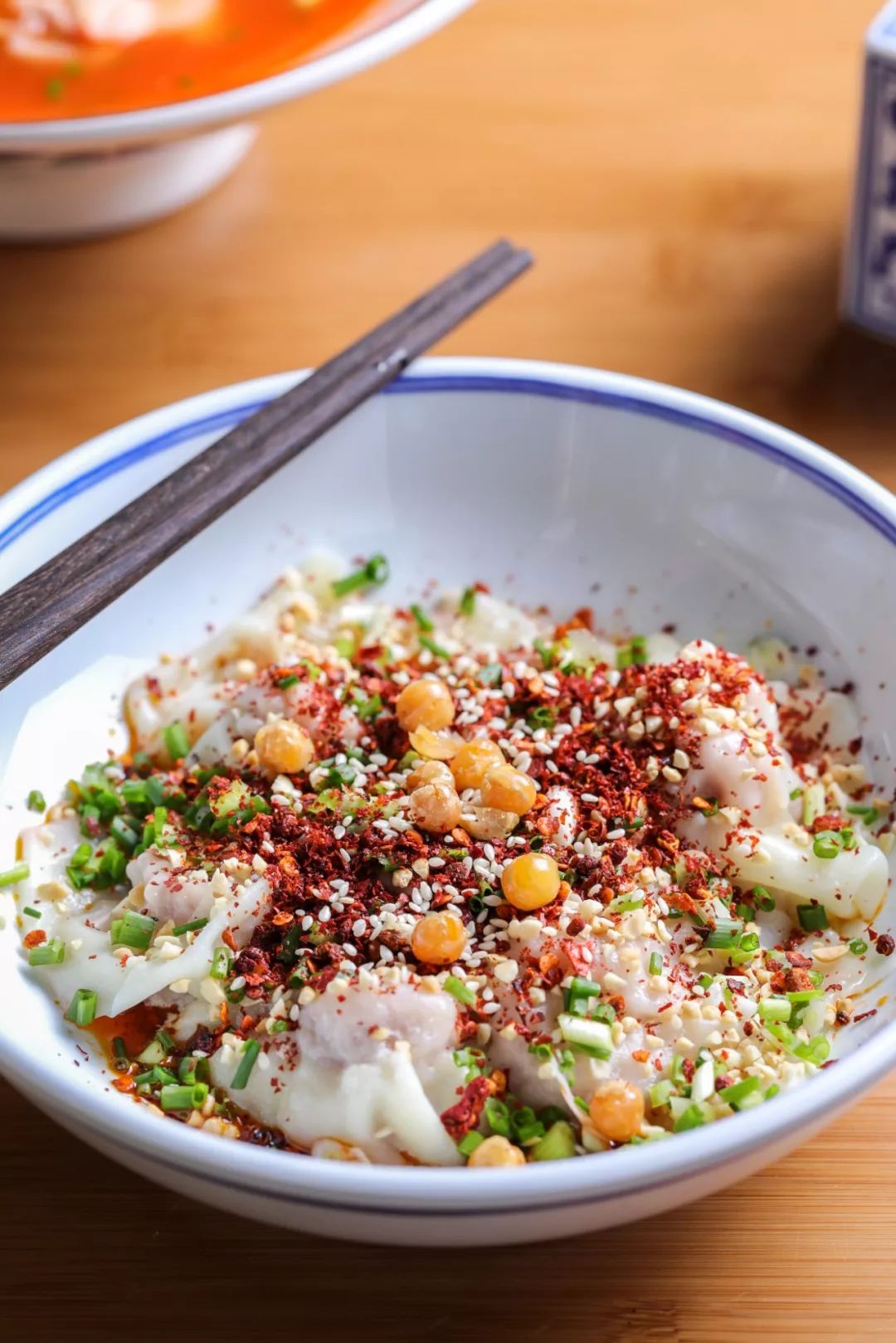 四川特有的抄手 在这也能找到,所有的抄手都是现包的,每天限量。皮薄肉多,葱花、芝麻、干海椒、黄金豌豆配料都这么丰富,缺一不可!