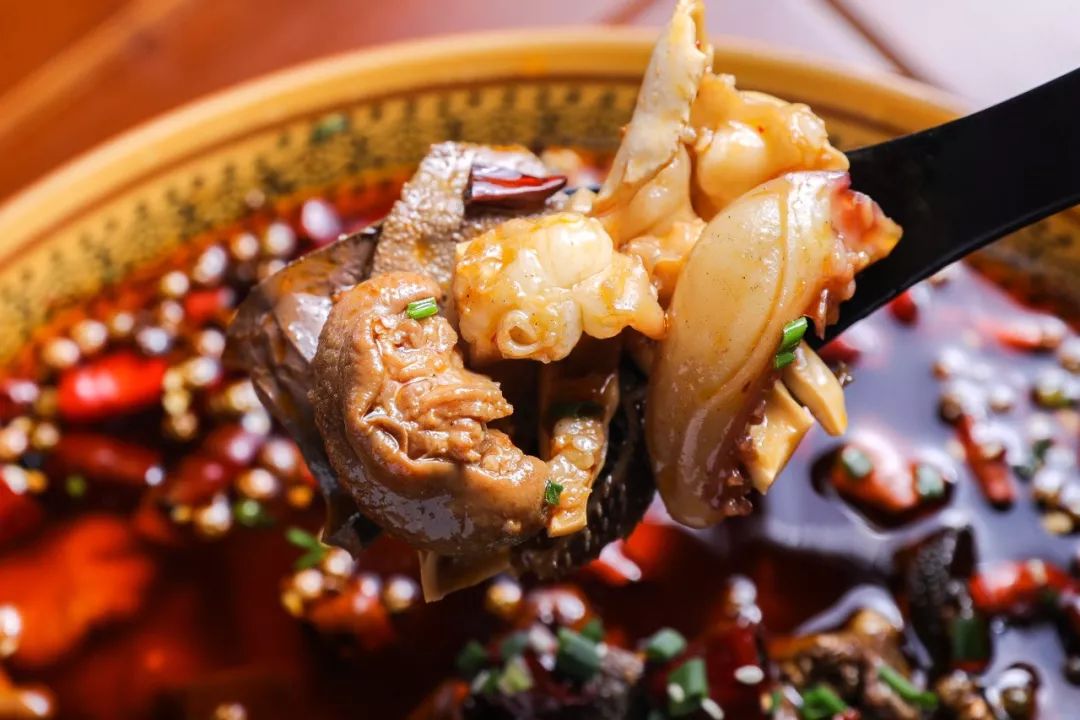 满满全是宝藏!毛肚、肥肠、鸭血、黄喉...全部都是四川新鲜空运而来的食材,除此之外店家还把猪肝放进来,堪称性价比一哥!麻辣鲜香的味道,两碗饭根本不成问题!