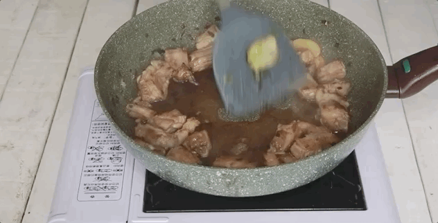 如果要让糖化的效果更好,其实最好是炒完肋排后,单独把冰糖炒至完全粘稠,再把肋排倒进去翻炒会更好。